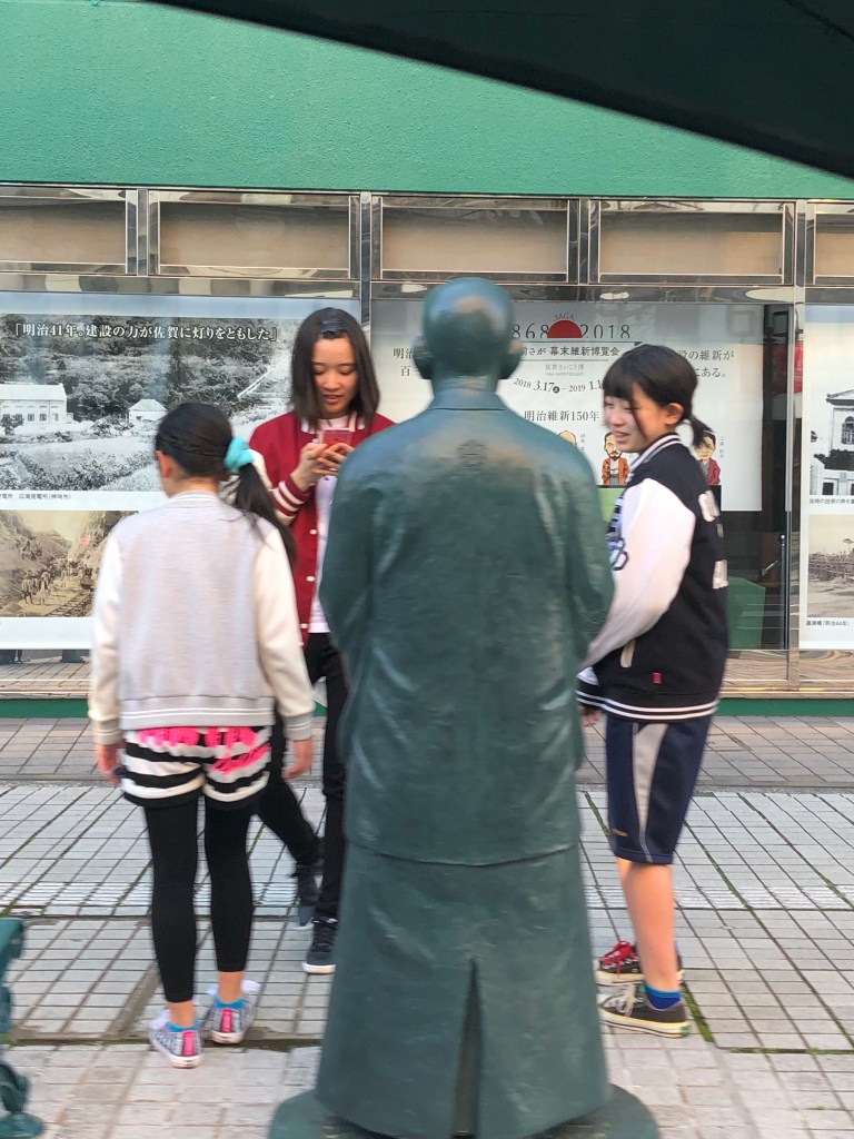 先日(3/3)除幕式を終えたばかりの佐賀ゆかりの偉人モニュメント25体を紹介すべく、ティーンズミュージカルの子たちにインスタ映えするような写真と偉人の一言紹介の動画を撮ってくるという依頼をしました。
