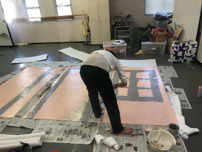 たったの二日間で約4畳の絵と半畳の紙芝居6枚を書き上げてくれたデザイナーに感謝したい。