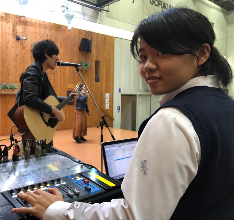 何より音響を手伝ってくれてるKさんは高校2年生ながら、舞台の裏方に興味があるということです、音楽の時間とともに、音響の手伝いを通して、舞台のお仕事の楽しさや難しさを知ってもらえればなぁと思っています。