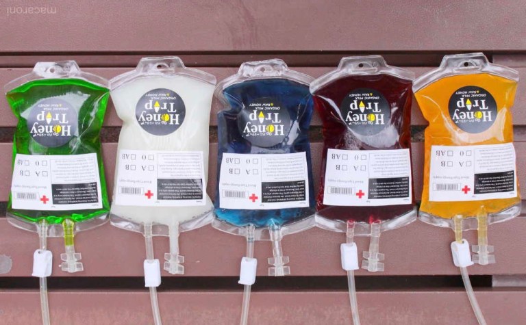 風気味患者の一部は写真のような点滴を逆さまにして、そこに自分の風を移すことによって、世の中に還元している人もいる。(写真はイメージ)