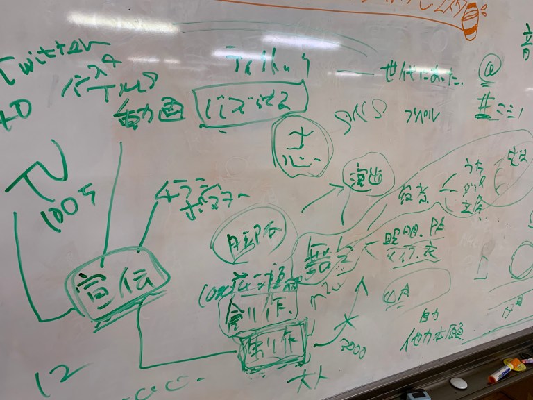 昨日はレッスンの予定はなく、夕方からティーンズミュージカルSAGAの有志が集まって、集会を開きました。