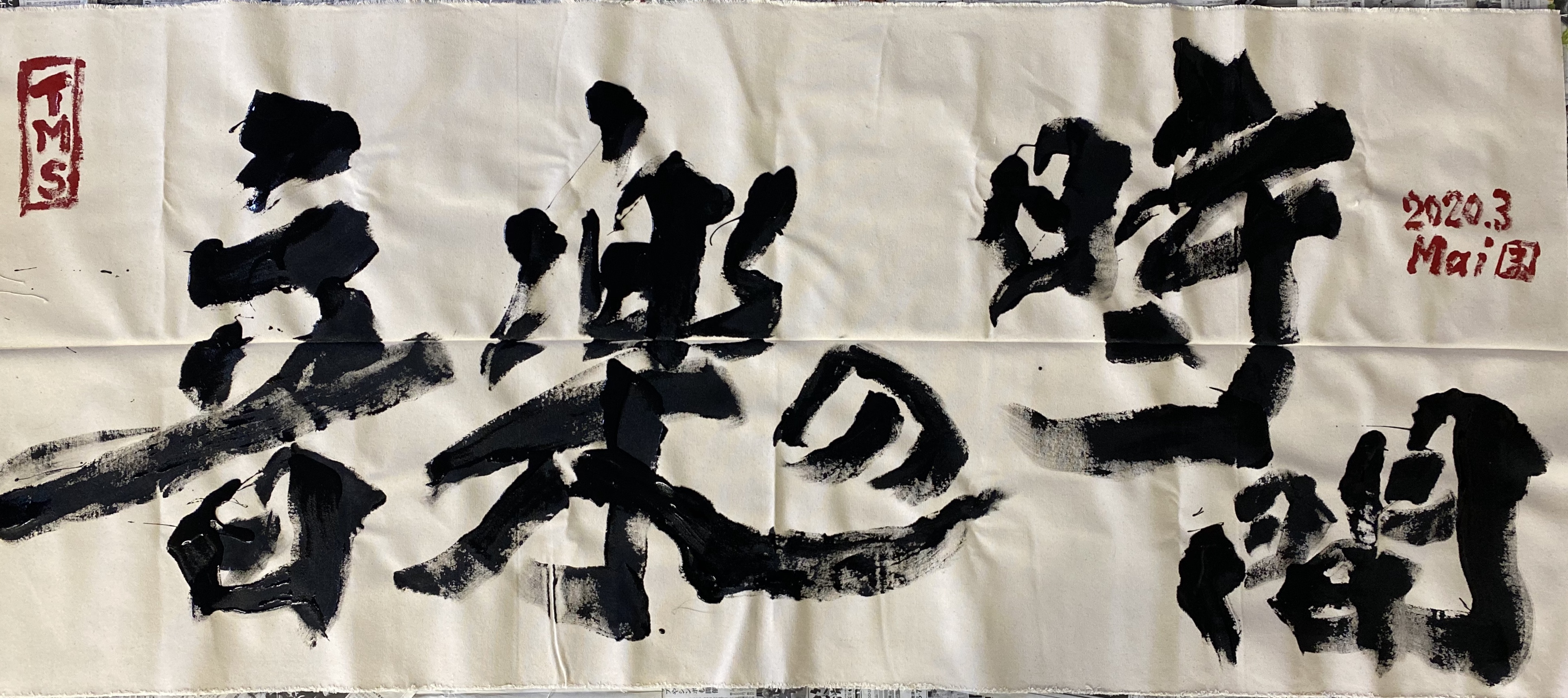 そして幸先が良かったのは、音楽の時間の垂れ幕をティーンズミュージカルSAGAの卒団生が書きにきてくれた事❣️