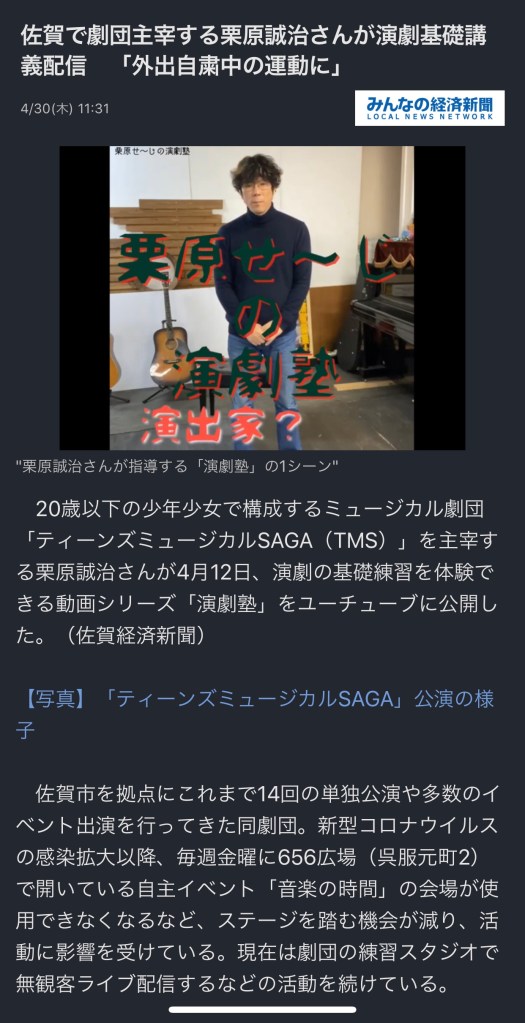 今日は、はじめてのティーンズミュージカルSAGAのオンラインレッスンだ。