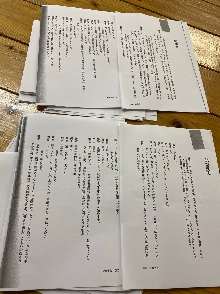 昨日はSAGAパーフェクトシアターの練習でした。前半バレエの基礎練習をやって、後半は発声、そしてコントの脚本を二本ほど読んで稽古をしてみました。