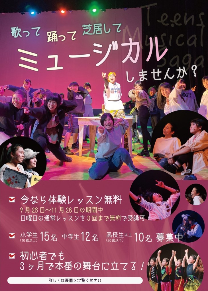 わたしは佐賀市を中心にティーンズミュージカルSAGAと言う10代の子どもたちとミュージカル舞台を18年ほどつくっているものです。