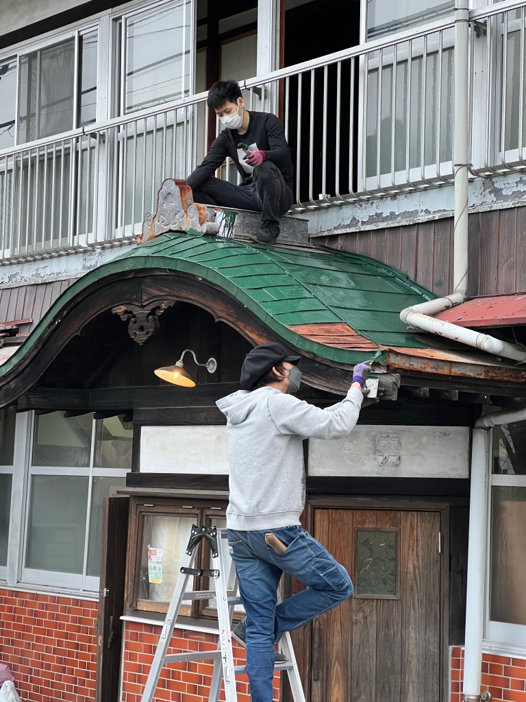 昨日はランドマークリノベの電気配線工事も終わり、破風の色塗りをやってもらっていました。