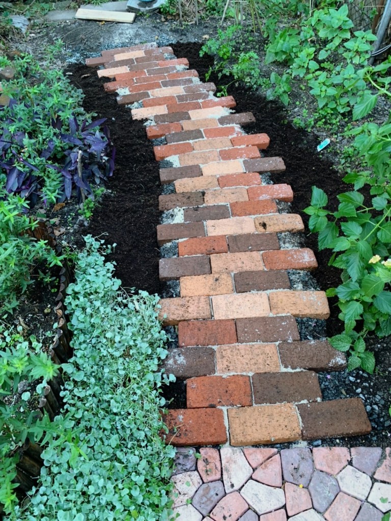 ランドマークprojectの方は、庭の奥の方の小径を作ろうと煉瓦を敷いてみました。