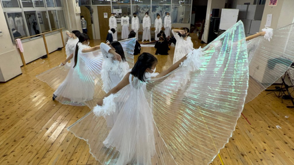 年上が年下に、保護者有志さんたちが衣装チクチク。