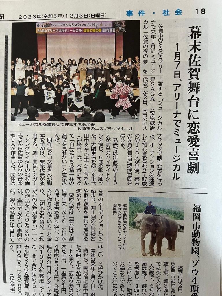 夜はミュージカル『佐賀の夜の夢』のコーラスの練習です。