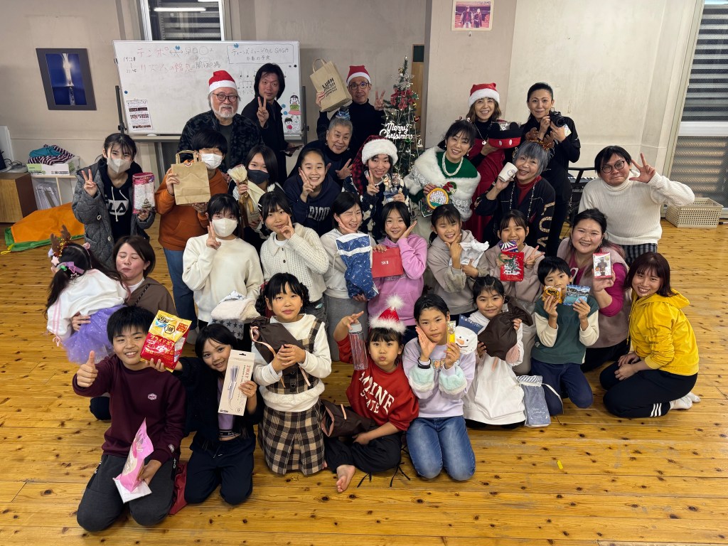 その後は子どもたちと大人でクリスマス会をやった。 みんなで作るケーキ🎂