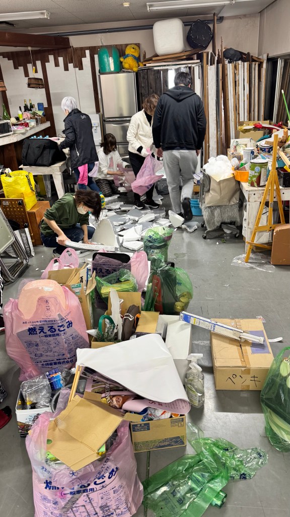 昨日の掃除の時に出た段ボールを捨てに行きましたよ。